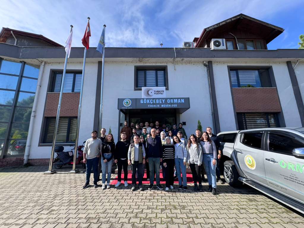 Tohum ve Fidanlık Tekniği dersi kapsamında, 4. sınıf öğrencileri, 24 Ekim 2024 tarihinde, Doç. Dr. Murat ALAN’ın yönetiminde, Gökçebey Orman Fidanlık Müdürlüğü’nde ders uygulaması gerçekleştirdiler. Uygulama çerçevesinde, fidanlık ve yönetim binasının tanıtılması, aşı ve çelikle vejetatif üretim, soğuk hava deposunun tanıtımı ve tohum saklama, yastıklarda fidan üretimi ile fidanlıkta kullanılan alet ve makinaların tanıtımı üzerinde durulmuştur. Ayrıca Fidanlık Personeli bu konularda deneyimlerini paylaşmıştır.