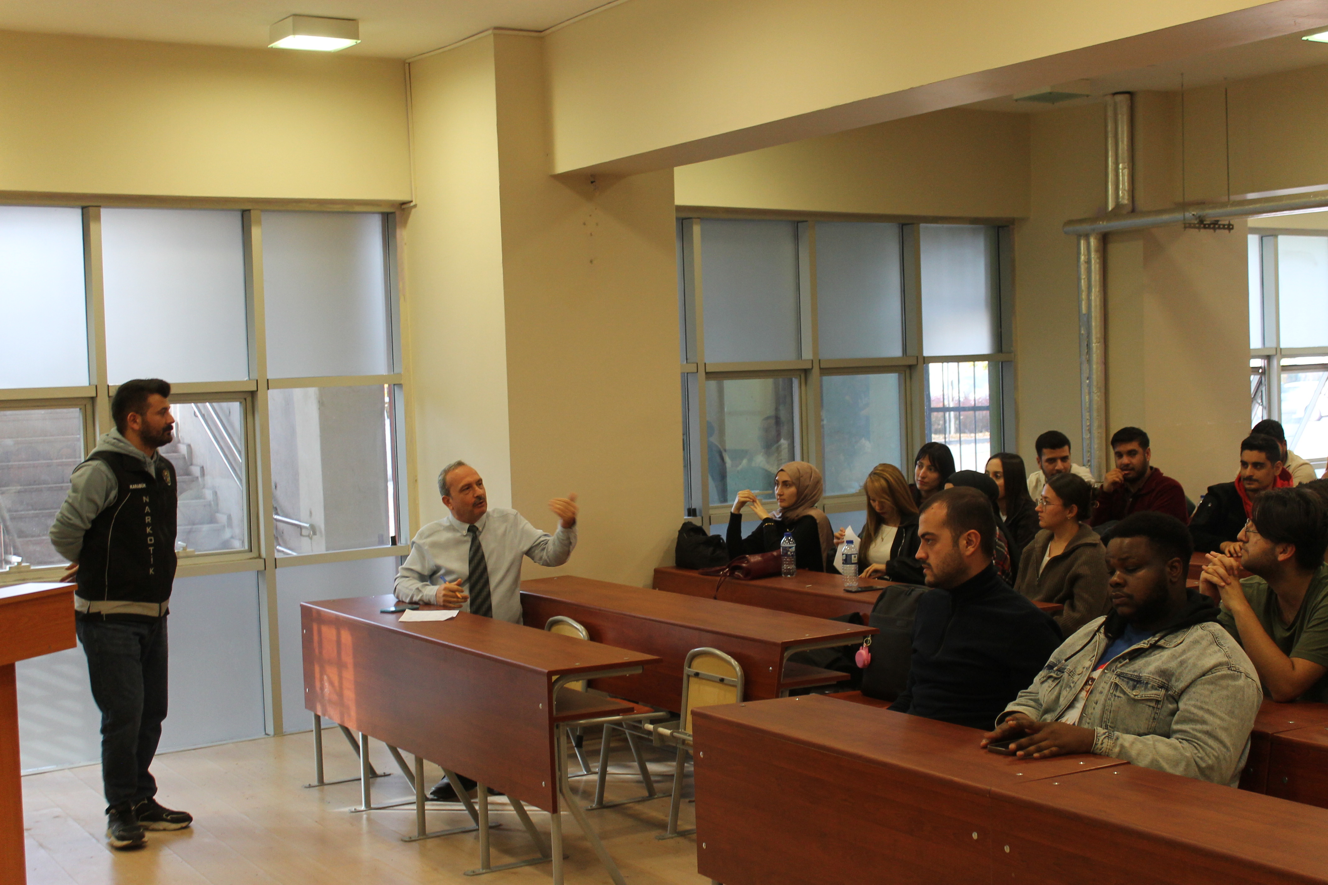 Karabük Emniyet Müdürlüğü Narkotik Suçlarla Mücadele Şube Müdürlüğü ekipleri tarafından Fakültemiz öğrencilerine yönelik “Bağımlılıkla Mücadele” konulu bilgilendirme eğitimi gerçekleştirildi.