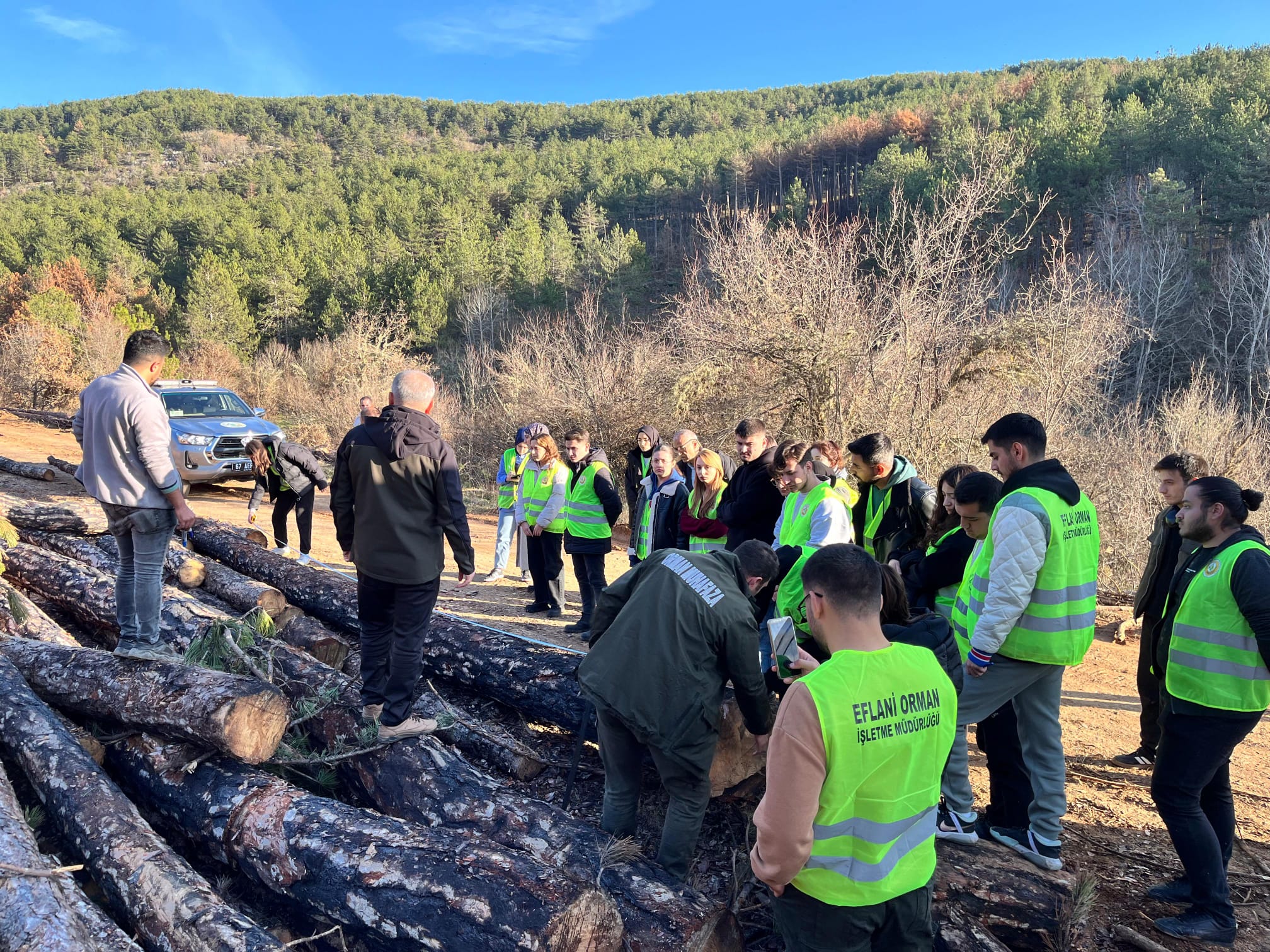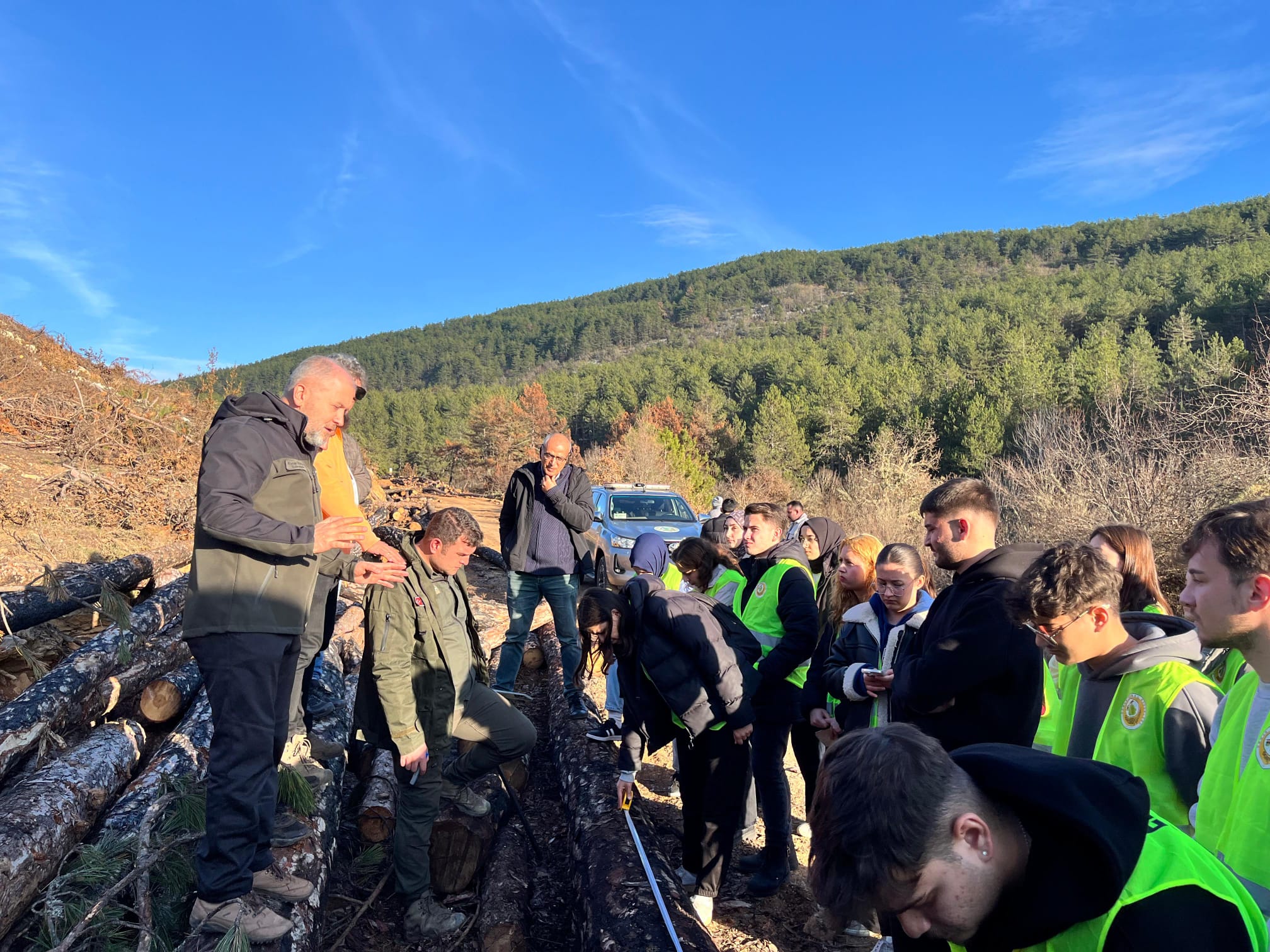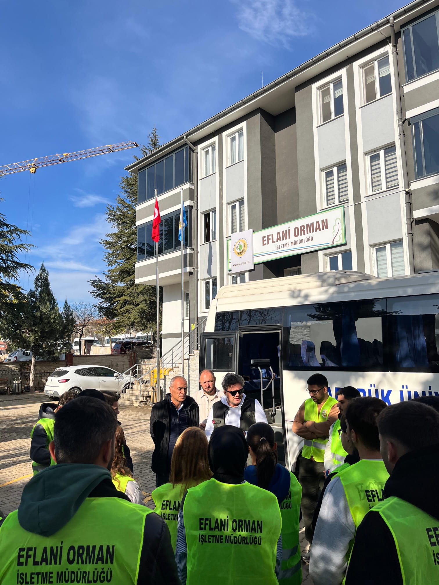 Fakültemiz arazi uygulamaları çerçevesinde 26 Kasım 2025 tarihinde, Doç. Dr. Murat Alan yönetiminde, Silvikültürün Temel Prensipleri dersi kapsamında Eflani Orman İşletme Müdürlüğü ormanlarında uygulamalı eğitim gerçekleştirilmiştir. Uygulama süresince orman deposu, İşletme Müdürü ziyareti, sıklık bakımı yapılmış alanlar, karaçam gençleştirme sahaları ve yangın sonrası alanlar silvikültürel açıdan incelenmiştir. Eflani Orman İşletme Müdürü Bilal Eyüboğlu ve ilgili orman şefi, saha deneyimlerini öğrencilerimizle paylaşarak uygulamaya önemli katkılar sunmuştur. Arazi uygulamasındaki destekleri için Zonguldak Orman Bölge Müdürlüğüne ve Eflani Orman İşletme Müdürlüğüne teşekkür ederiz.