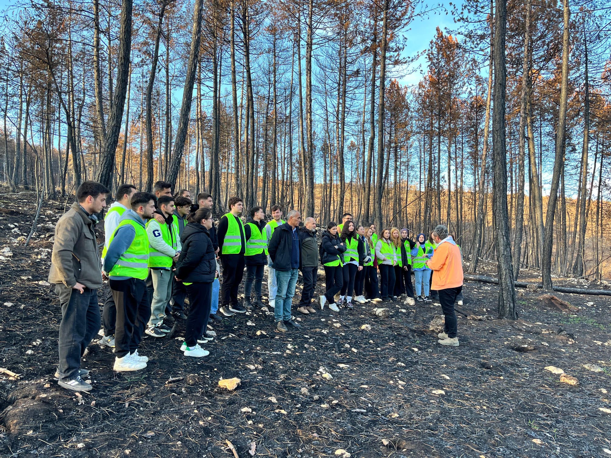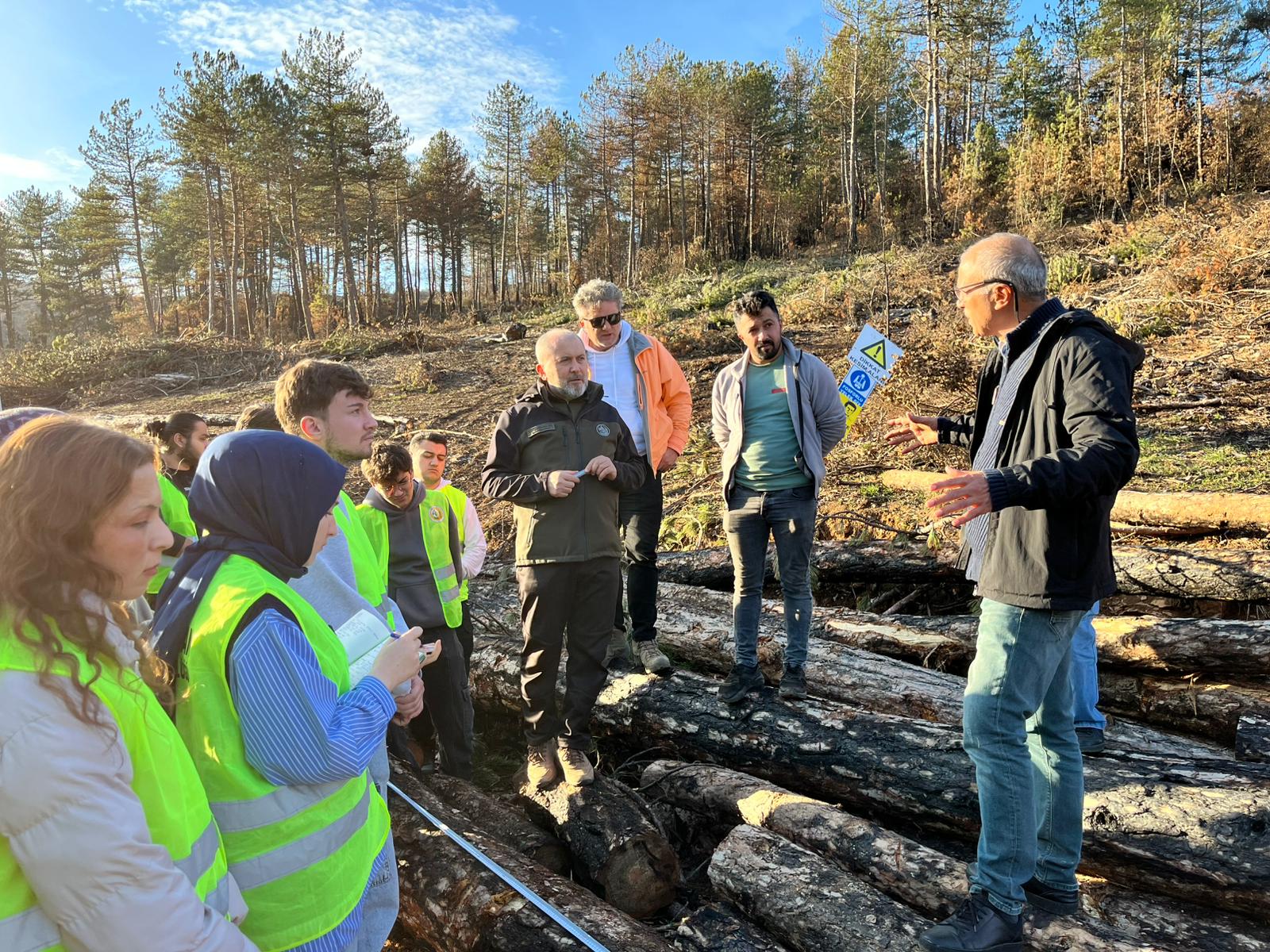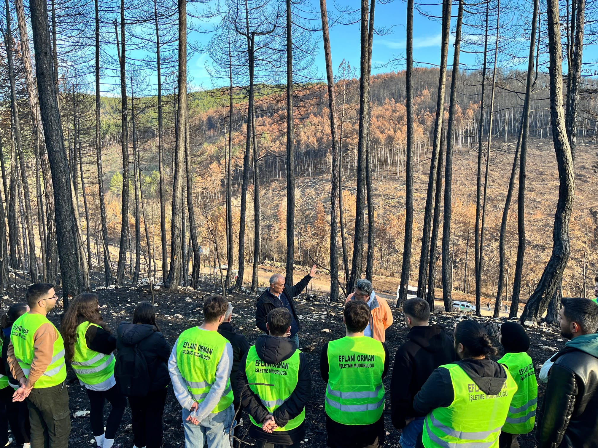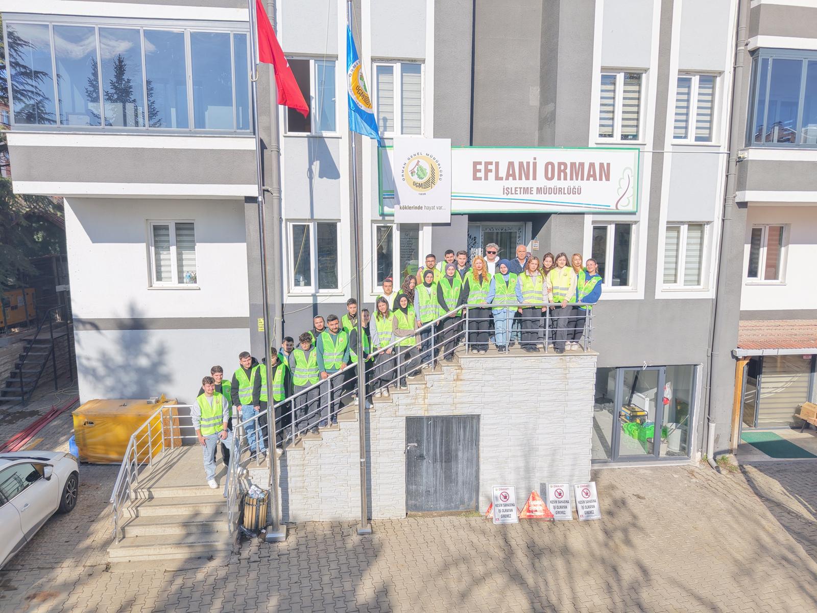 Fakültemiz arazi uygulamaları çerçevesinde 26 Kasım 2025 tarihinde, Doç. Dr. Murat Alan yönetiminde, Silvikültürün Temel Prensipleri dersi kapsamında Eflani Orman İşletme Müdürlüğü ormanlarında uygulamalı eğitim gerçekleştirilmiştir. Uygulama süresince orman deposu, İşletme Müdürü ziyareti, sıklık bakımı yapılmış alanlar, karaçam gençleştirme sahaları ve yangın sonrası alanlar silvikültürel açıdan incelenmiştir. Eflani Orman İşletme Müdürü Bilal Eyüboğlu ve ilgili orman şefi, saha deneyimlerini öğrencilerimizle paylaşarak uygulamaya önemli katkılar sunmuştur. Arazi uygulamasındaki destekleri için Zonguldak Orman Bölge Müdürlüğüne ve Eflani Orman İşletme Müdürlüğüne teşekkür ederiz.