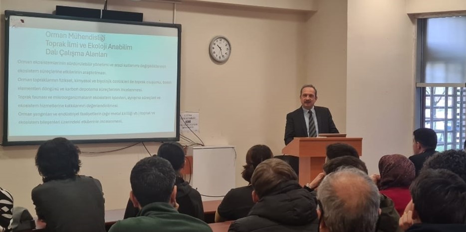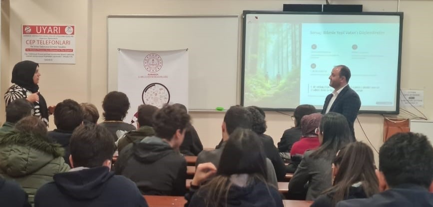 Milli Eğitim Bakanlığı Maarif Modeli kapsamında Batı Karadeniz Bölgesi için planlanan “Yeşil Vatan” etkinlikleri çerçevesinde, Karabük Genç AR-GE grubuna akademik danışmanlık ve rehberlik desteği sağlanmıştır. Söz konusu çalışma kapsamında Batı Karadeniz illeri arasında gerçekleştirilecek proje yarışmasına hazırlık amacıyla lise öğrencilerine yönelik bilimsel danışmanlık faaliyetleri yürütülmüştür. Bu kapsamda fakültemiz öğretim üyelerinin katılımıyla gerçekleştirilen etkinlik, Fakültemiz Dekanı Prof. Dr. Hüseyin YÖRÜR başkanlığında düzenlenmiştir. Etkinliğe; Dekan Yardımcıları Prof. Dr. Cumhur GÜNGÖROĞLU ve Doç. Dr. Ahmet DUYAR, Orman Mühendisliği Bölümü öğretim üyelerinden Prof. Dr. Murat ALAN, Dr. Öğr. Üyesi Nagihan SEKİ, Dr. Öğr. Üyesi Saim YILDIRIMER ve Dr. Öğr. Üyesi Mustafa AYBAR ile Doğa Koruma ve Biyoçeşitlilik Yönetimi Bölüm Başkanlığından Doç. Dr. Aysel ALKAN UÇKUN ve Dr. Öğr. Üyesi Kübra GÜNDÜZ VAYDOĞAN katılım sağlamıştır.