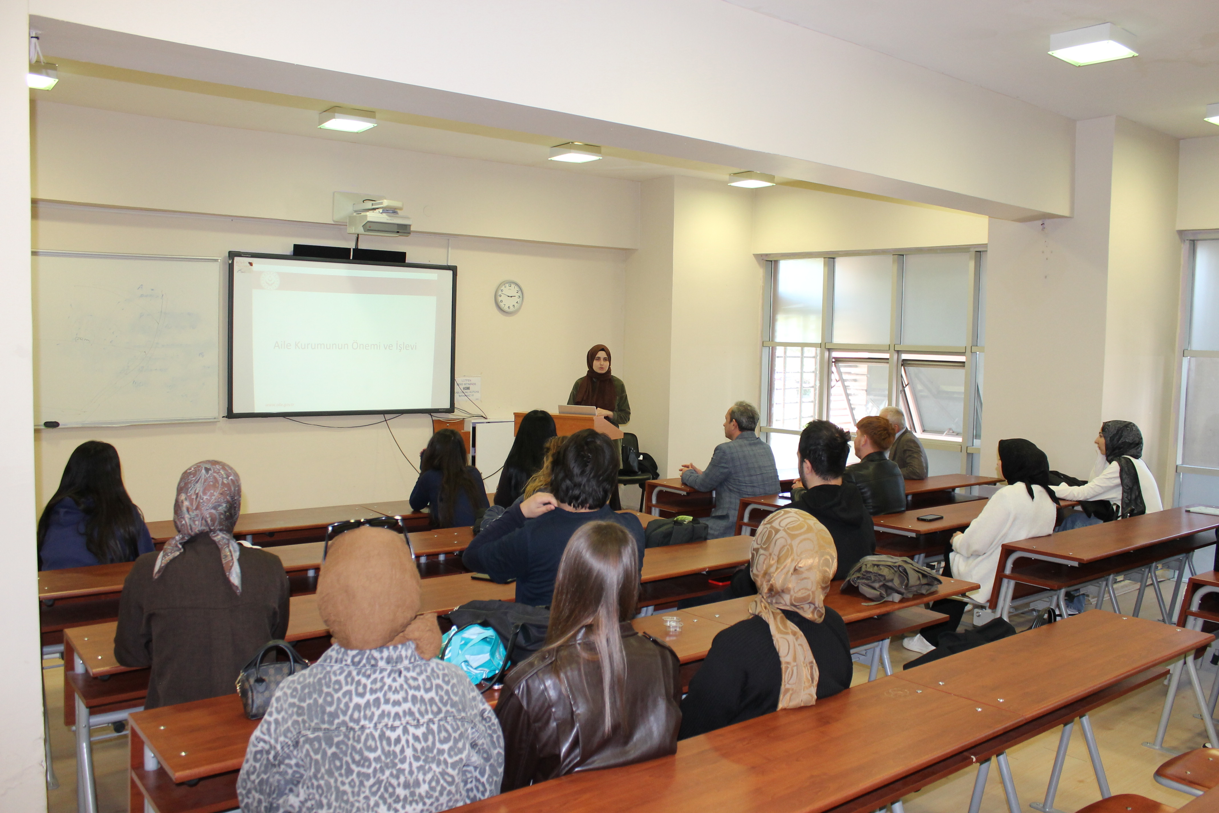 Fakültemiz öğrencilerine yönelik Aile ve Sosyal Hizmetler İl Müdürlüğü tarafından düzenlenen “Aile Eğitimi Programı” kapsamında ilk eğitim faaliyeti başarıyla gerçekleştirildi.