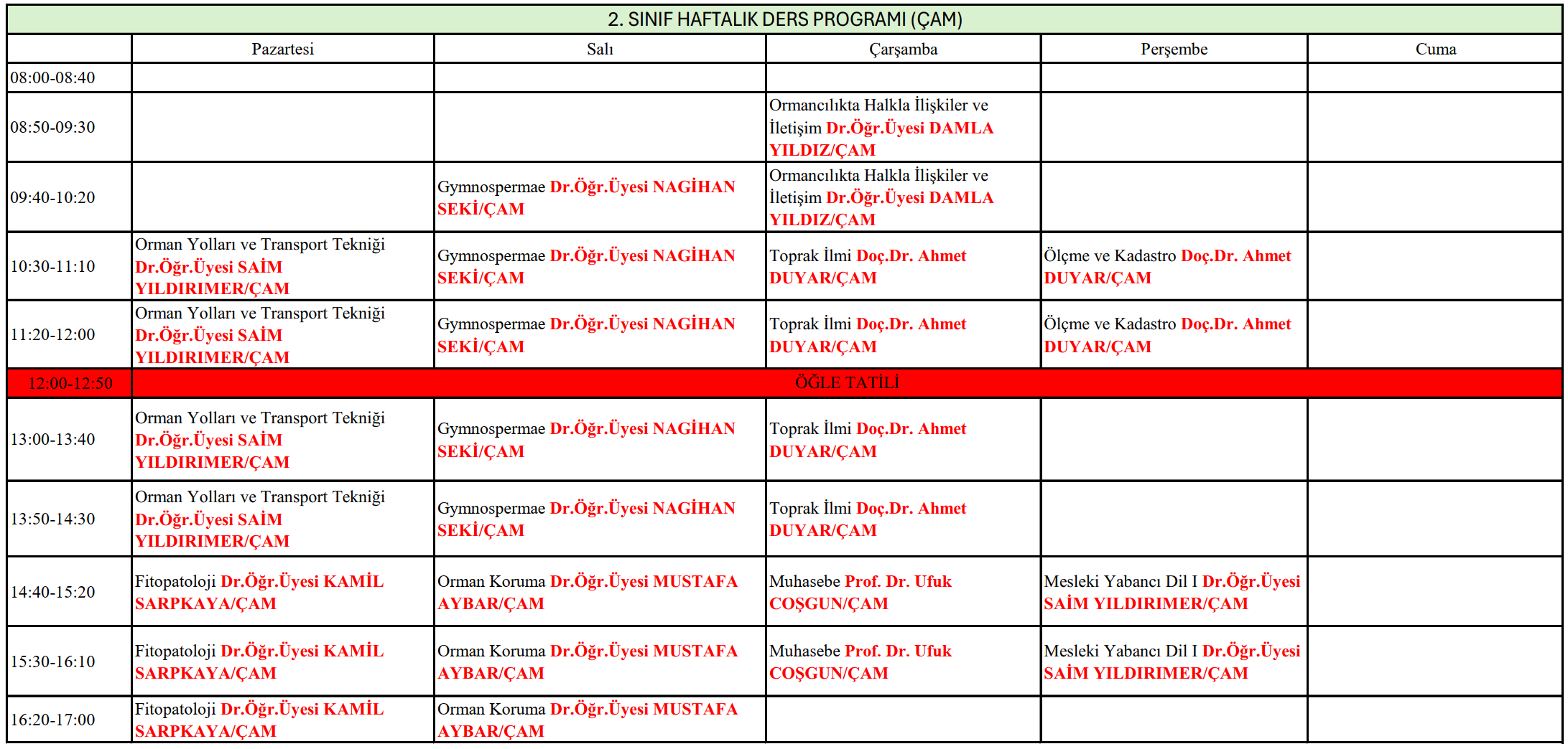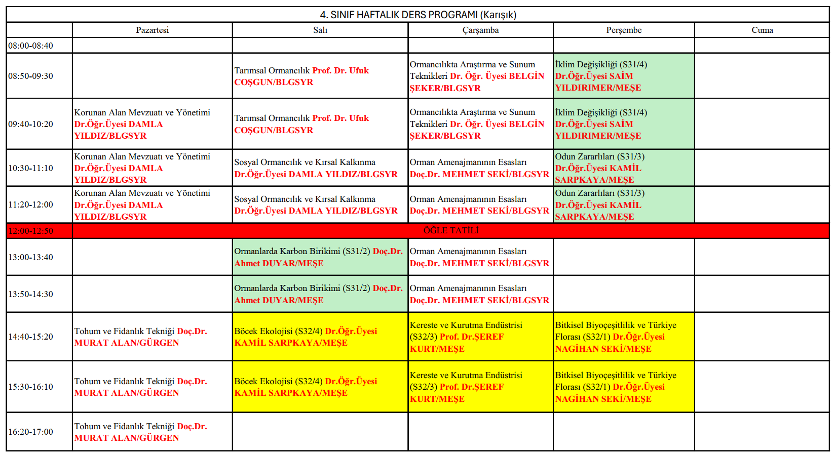 Orman Mühendisliği Bölümü 2024/2025 Bahar Dönemi Ders ...